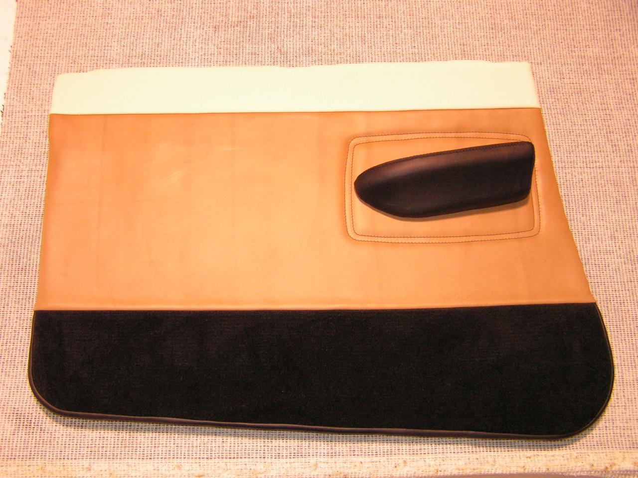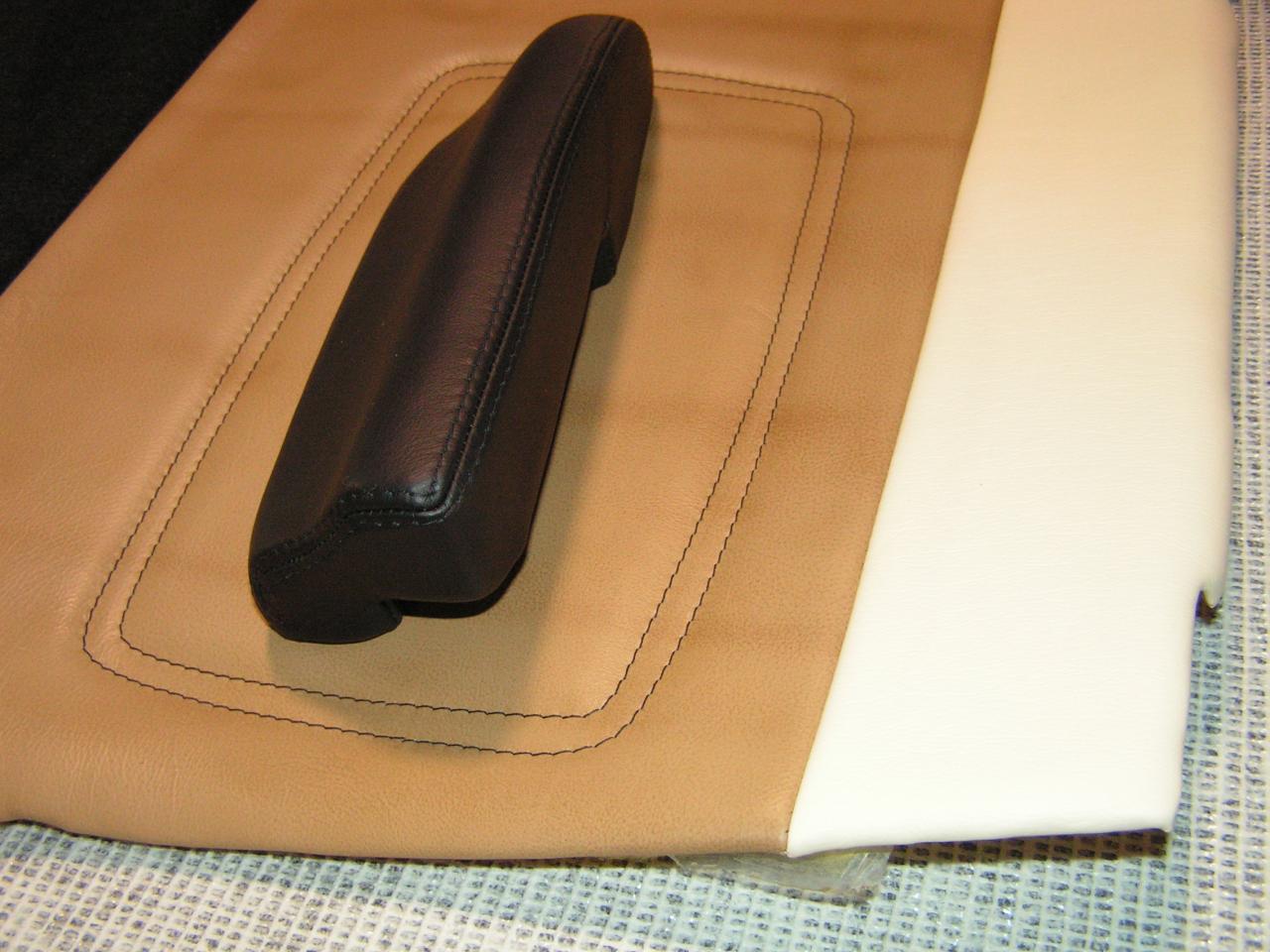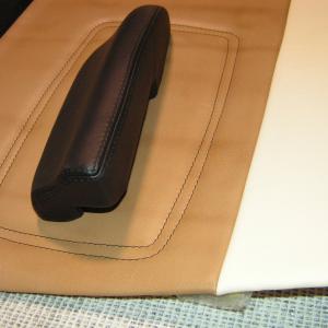 DOOR PANEL ARMREST RECOVERED IN BLACK LEATHER WITH A DOUBLE TOP STITCH